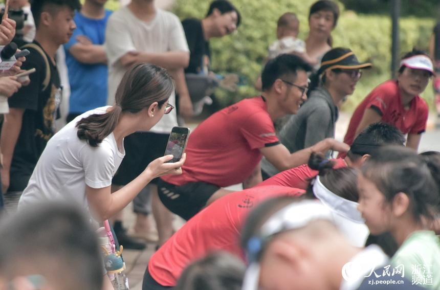 家長拿出手機記錄下孩子的運動時刻。人民網 張帆攝