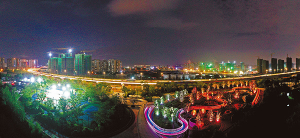 近日,杭州市余杭區良渚門戶公園(一期)項目正式開放,夏夜的公園里,燈光五彩變幻,周邊居民紛至沓來,休閑健身,成了大運河畔又一道亮麗的風景。良渚門戶公園(一期)是大運河文化帶良渚段的首開項目,占地面積近6萬平方米。公園以運動休閑為主題。(李忠)