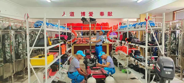 省水利搶險總隊慈航搶險隊提前做好設備檢測。浙江水利供圖