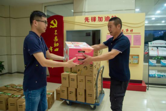 水果總計50箱,為的是感謝工作人員在雨夜里的辛勤付出。這位送來水果的大哥很少說話,就笑呵呵說著這水果甜又解渴。從放置水果到驅車離開,與他最大的互動便是拍上了幾張照片。當問起名字時,他也只是呵呵一笑。