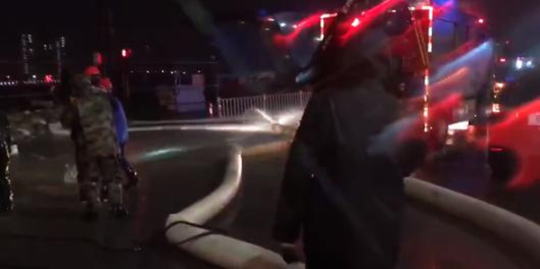 消防救援人員抵達現場后發現,由于雨量不斷增大且正值海水漲潮,路面積水情況正逐漸加劇,如不及時進行排水,積水將漫入周邊居民家中。消防人員立即出動3臺大功率水泵,對積水路段進行排水作業。到25日凌晨2點多,經過4小時的搶險,周邊居民家的水位明顯下降。
