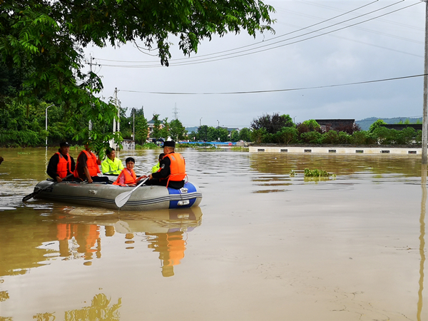 次塢鎮民警轉移被困人員。紹公宣供圖