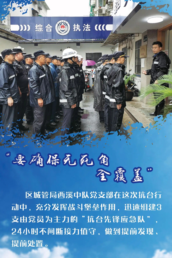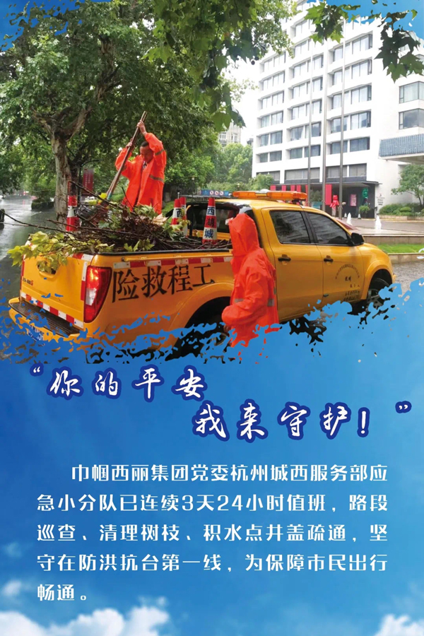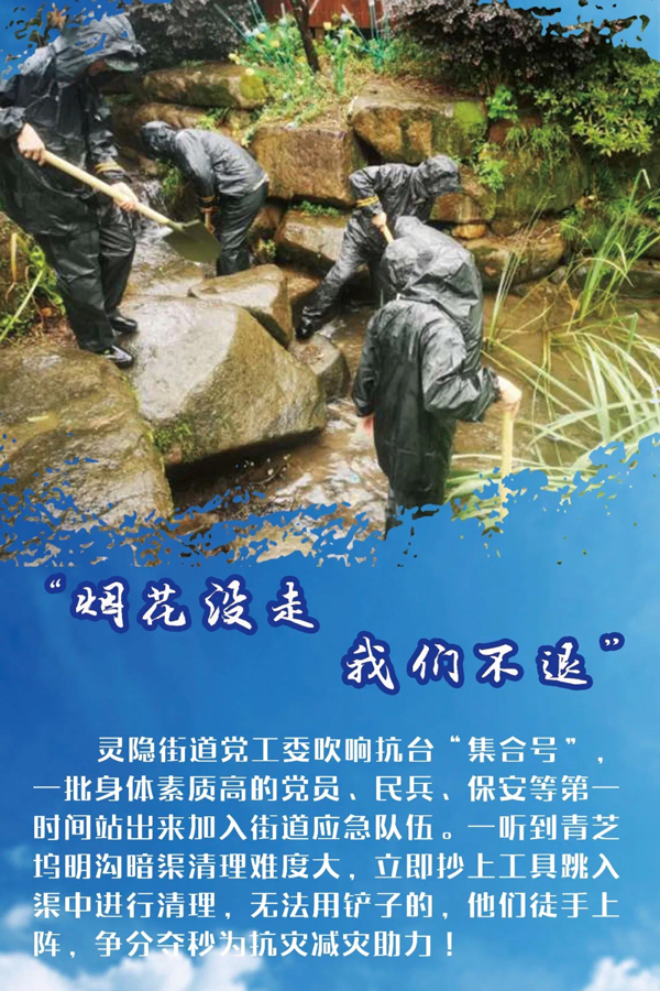 今年第6號臺風“煙花”從7月24日開始影響杭州市,7月25日中午登陸舟山后,于26日9時50分前后在浙江省平湖市沿海二次登陸,給人民群眾的生命財產安全造成重大威脅。連日來,杭州市西湖區村社、機關、行業、兩新、國企等各領域黨組織和黨員干部深入防臺抗汛第一線,以守土有責、守土擔責、守土盡責的決心和行動,全力以赴抵御“煙花”來襲!