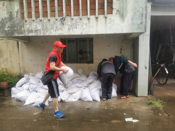 志愿者正在搬運防汛沙袋。余姚市煙草專賣局供圖