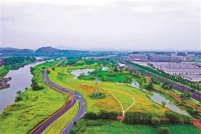 如今,紙墨間的詩意水鄉得以重現。漫步在苕溪邊的智薈動力公園中,可以看到,荷花搖曳,鷺鳥翩飛,淺丘、濕地、稻田、草地相映成趣。每逢周末,城北仁和、塘棲的市民都會驅車來這里的水邊拍婚紗照、跑步、觀光、野餐、休閑。