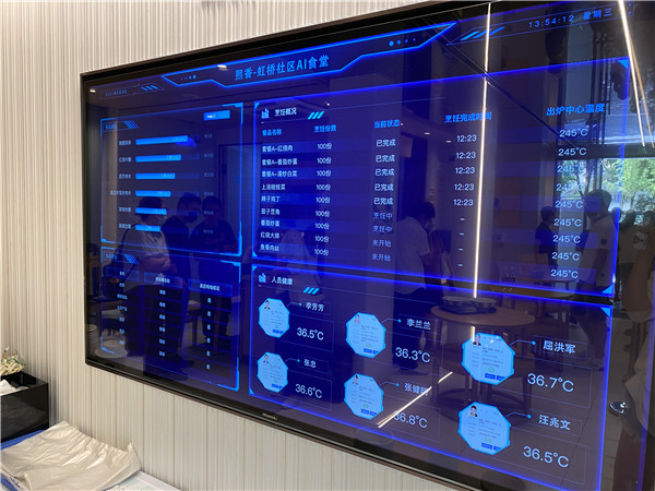 食堂具備數字化模擬烹飪中餐八大菜系的功能,可自動分菜、自動打包、配有微波加熱裝置,可根據算法調節溫度和濕度,同時,整個食堂系統進行了適老化技術的應用,通過新終端賦能早餐工程、白領餐、老年餐?芍^在后疫情時代,用“智能化配餐”讓居民在就餐中真真切切感受到便利,日久生情愛上這種數字化生活場景。