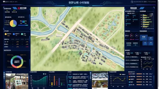 依托AR、大數據、物聯網等技術,自主開發“創夢山根·小村智腦”智慧平臺,動態監測交通、客流巡防等情況,推動黨建、治理、服務、產業等各大場景一網融合、一屏管理、一體智控。