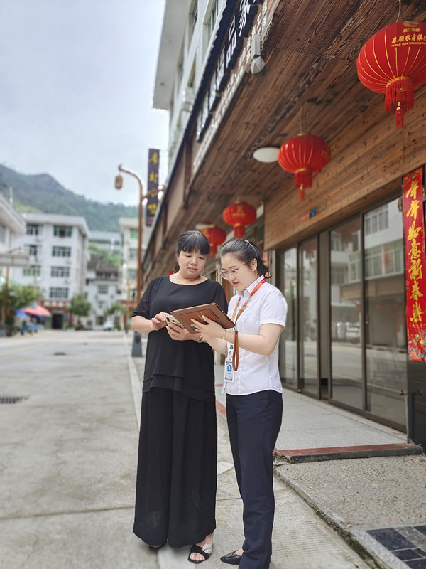 泰順農商銀行南浦溪支行客戶經理吳麗江為毛利娥辦理溫州市首筆“美麗鄉村貸”。泰順農商銀行供圖
