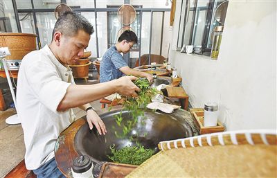 抖、搭、搨、捺、甩、抓、推、扣、壓、磨,在學會了基本的手法后,炒茶最重要的,還是練手感。從早上9點到下午4點,每個參與培訓的學員都要完成30鍋鮮葉的炒制。
