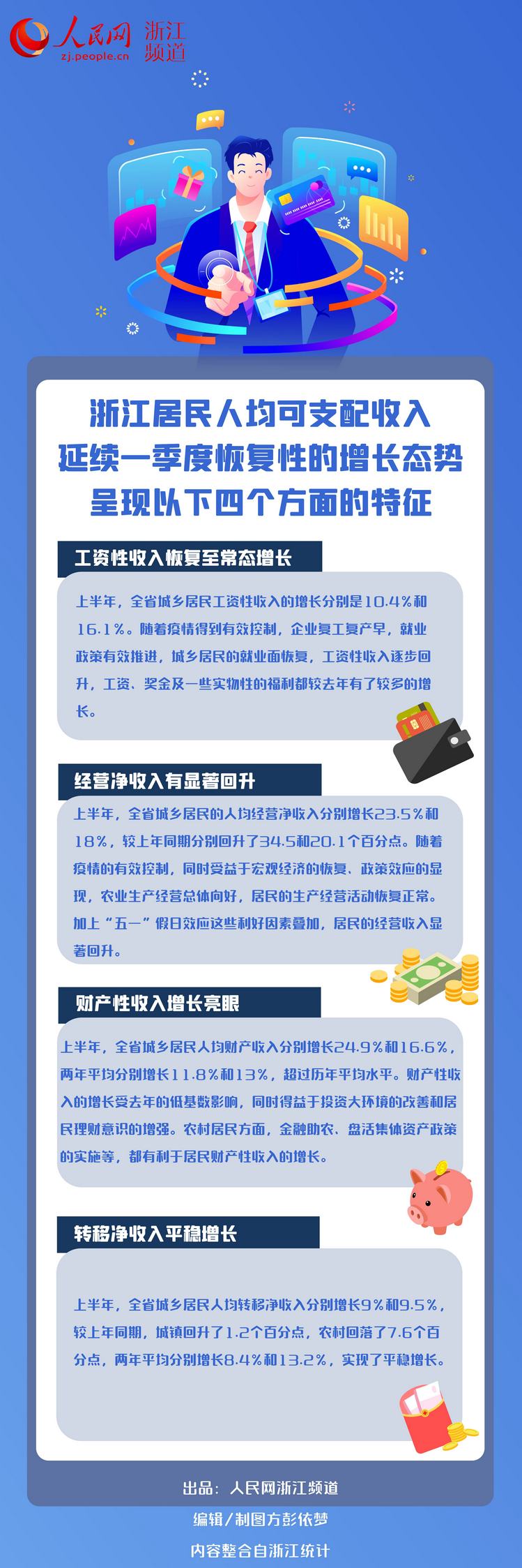 今年上半年,隨著經濟的持續穩定發展,浙江就業形勢不斷向好。一些惠企政策、支農支小政策、消費刺激政策等效果明顯,浙江居民人均可支配收入延續了一季度恢復性的增長態勢。