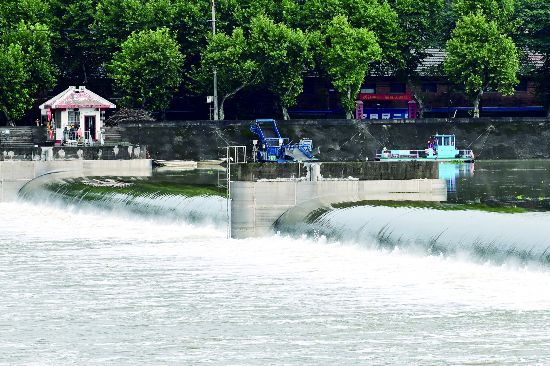 8月13日,金華市區婺江河盤橋水利樞紐橡皮壩在泄水。 受強對流云團影響,8月11日起,金華出現分散性陣雨或雷雨,部分地區短時暴雨。預計到19日前受冷暖空氣持續交匯影響,多降雨天氣。為此,市相關部門緊急行動起來,采取措施防御強降雨。