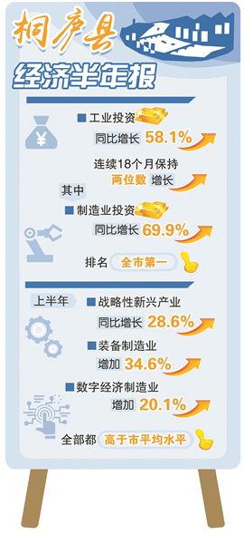哪些因素促進桐廬投資增速全市領跑?“重點產業提供了有力支撐!蓖⿵]縣經信局經濟運行科科長林峰列出一連串的數字:上半年戰略性新興產業同比增長28.6%,裝備制造業增加34.6%,數字經濟制造業增加20.1%,全部都高于市平均水平,也表明桐廬的產業結構指標在持續優化。