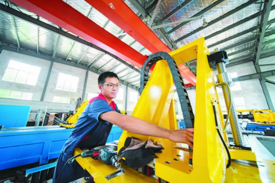 金馬遜機械工人在裝配機械。雷寧攝