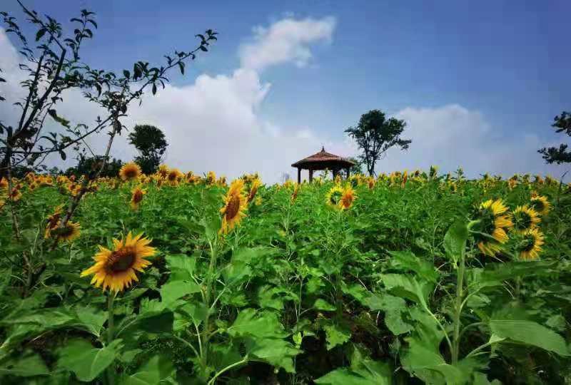 大片向日葵競相盛開,點綴在綠色的田野間,格外耀眼。8月,在錢塘區河莊街道新圍村黨建田園廣場,一大片向日葵迎風綻放,吸引眾多居民打卡游玩!敖陙,錢塘區河莊街道以‘農業+旅游’為抓手,將美麗鄉村建設與荒地整治、美麗田園建設、產業轉型升級等緊密結合,積極轉變思想觀念、更新工作思路,充分利用自身區位優勢,構建了一個集農業生產、觀光、休閑、旅游、農事體驗、農產品購銷等于一體的三產融合的都市農業園區!卞X塘區農業農村局相關負責人說。