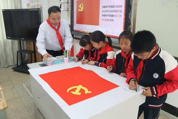 在當天的“黨史學習進校園”主題活動中,該局青年員工與學生們一起開展了手繪黨旗、紅歌傳唱、誦讀家書等多個活動,在活動中引導青少年了解和傳承紅色基因,扣好人生“第一?圩印。