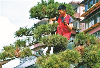 志愿者在清潔花木。嚴龍、蔡夢珠攝