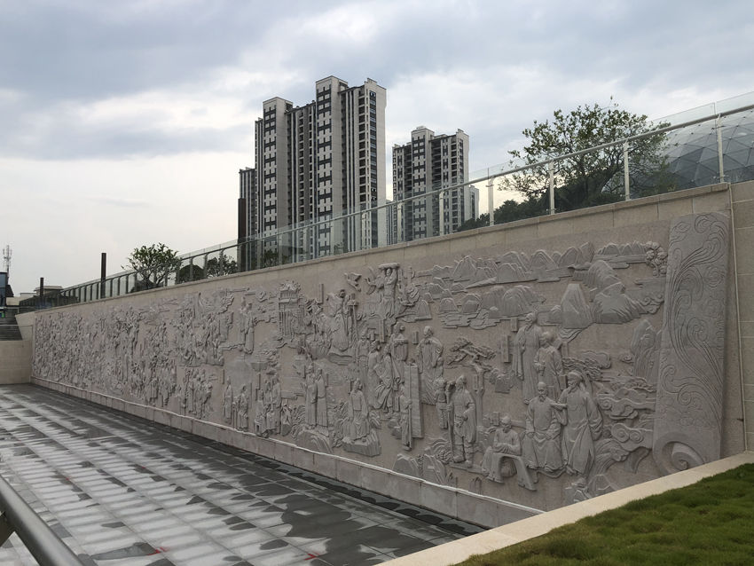 新昌縣康樂廣場浮雕文化墻。人民網 陳萬泉攝