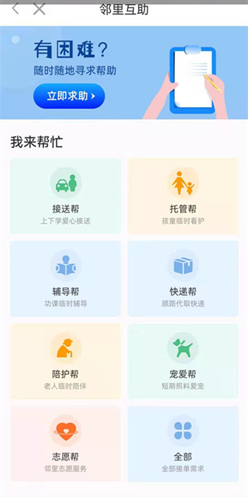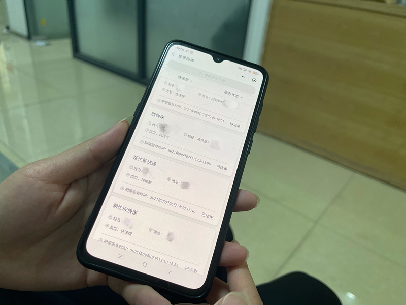 這家銀行名叫“時間銀行”,它是蔣村街道今年4月上線的“府苑數字生活社區平臺”的重要模塊之一。居民只需要注冊,就能成為“時間銀行”的志愿者。這個平臺上共有6個功能場景模塊,包括“接送幫”“托管幫”“輔導幫”“快遞幫”“陪護幫”“寵愛幫”以及一個補充模塊“志愿幫”。當遇上沒空拿快遞、老人需要照顧陪伴、沒時間接送孩子放學、沒空遛狗等小困難時,可以在平臺上下單求助;志愿者們接了單,就能幫助他人并賺取“時間幣”。