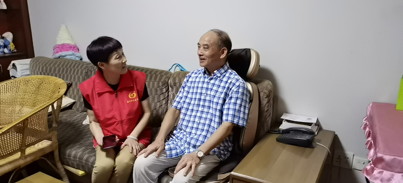 府苑新村居民馬仙娟陪老人聊天。蔣村街道供圖