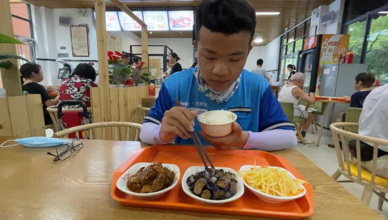 “前幾天下午沒單子,天熱得厲害,回站點休息又太遠,我就去了就近的翠苑四區驛站休息,吹吹空調降降溫,喝杯水。翠苑一區老年食堂我也去吃過,紅燒肉、豆腐口味都很不錯,干凈衛生!焙ぷ鳛榈谝慌w驗驛站服務的外賣小哥,對“飛哥小驛”贊不絕口。