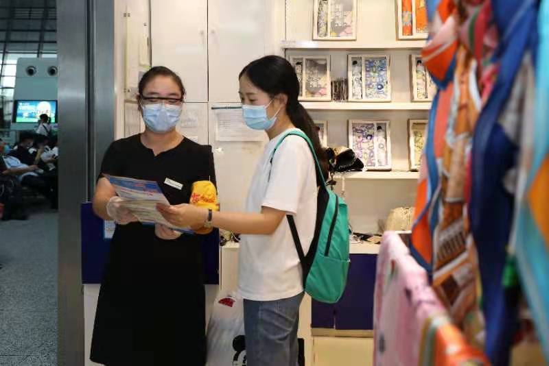 商戶“義警”隊員向到店旅客開展防電信詐騙。杭州鐵路公安供圖