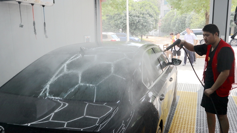 拿出車里的腳墊,清洗輪胎鋼圈,噴灑泡沫,沖洗車身……在金華市婺城區乾西鄉“真情”洗車店里,兩名員工正合作清洗著車輛。乍一看,兩個人的動作并不熟練,甚至有些笨拙,洗車的速度也不算快,但“真情”洗車店卻并不缺少顧客。有的顧客將自己的三輛車都定時在這里清洗,有的顧客更是驅車10公里趕來這里洗車。