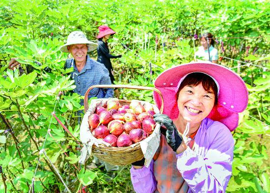9月15日,在金華婺城區羅店鎮西吳聯村種植無花果的種植戶吳瑤貴夫婦倆,在果園里挑選熟果采摘。無花果是該村的四大特色產業之一,遠近聞名,同時依托羅店旅游帶來的人氣,他家的無花果經常供不應求,夫妻倆靠著甜甜的無花果過上了好日子。(吳潮宏)