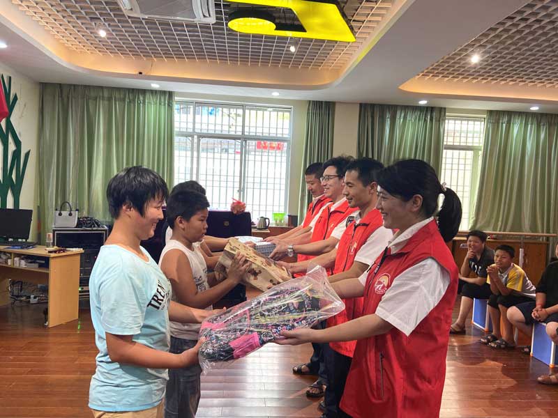 “黨員突擊隊”志愿者為孩子們送上“微心愿”禮物。陳奎余攝