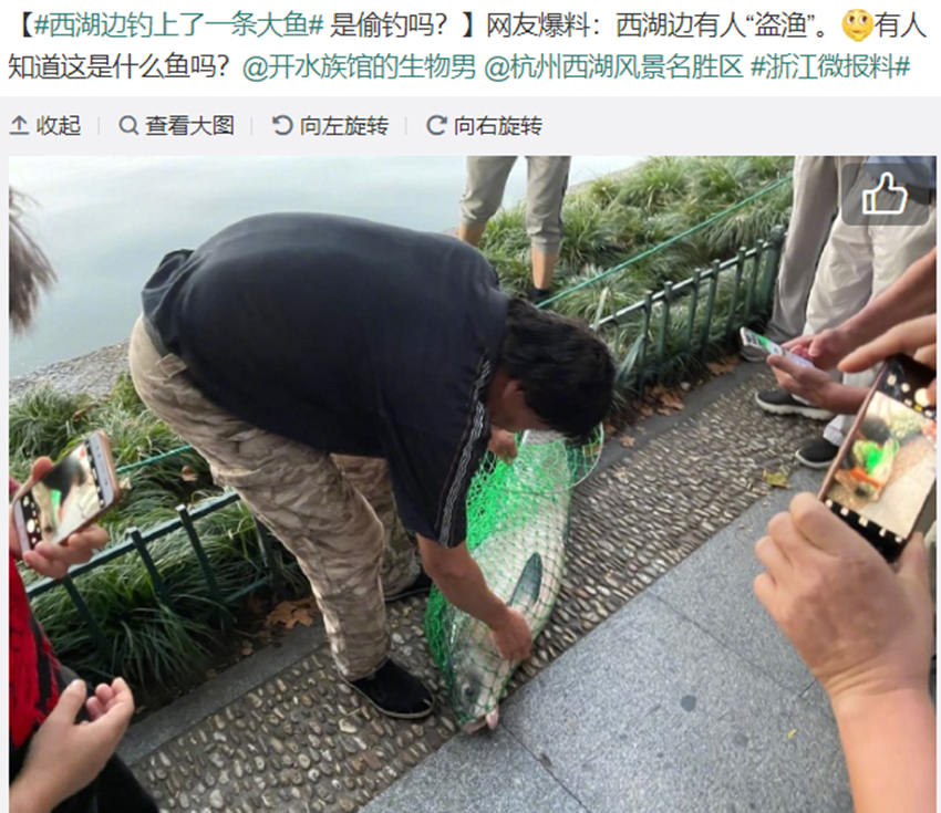 據悉,在關注到網上的相關情況后,西湖水域管理處第一時間展開了調查。西湖水域管理處工作人員表示,根據網傳圖片可以判斷不在指定垂釣區域,屬于違法行為。