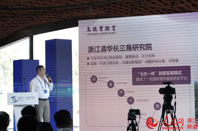 清華大學材料學院研究員、烏鎮實驗室常務副主任王軻介紹烏鎮實驗室。人民網 方彭依夢攝