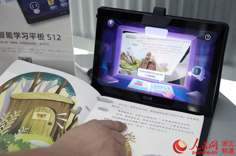 帶著孩子一起來看展的常先生告訴記者,在自己加班沒時間輔導孩子做作業或是輔導過程中自己也碰上解不出的難題時,教輔工具提供了很大幫助!皩W生時代的作業里總有聲情并茂地朗讀并背誦全文這一項,對年紀較小、識字量較少的孩子來說還是有困難的,F在的學習平板升級增加了指尖查詞點讀功能,在督促孩子高效學習的同時,也提升了他們的閱讀能力!背O壬锌,“孩子把書放到平板前,直接用手指點擊文章中有疑問的地方進行提問,立刻就能得到答復,在一點一問間輕松搞定各種難題!
