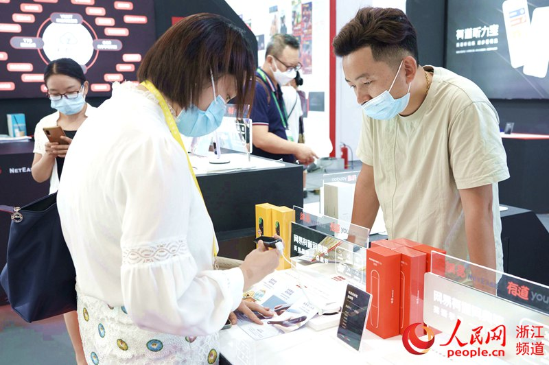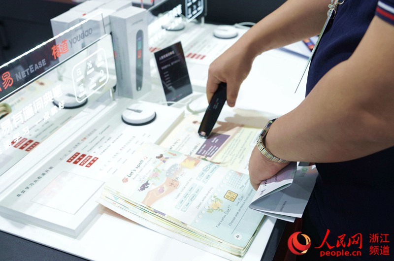 互聯網之光博覽會上,觀眾體驗詞典筆的翻譯功能。人民網 方彭依夢攝