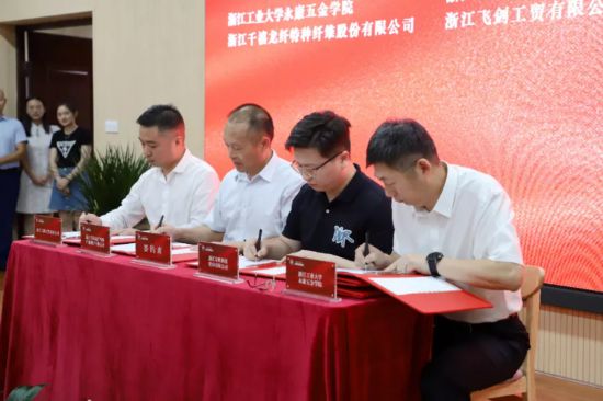 成立儀式上,與會領導為浙江工業大學永康五金學院首批專業教師、創新團隊和研究生產業導師頒發聘書,永康現代五金產教合作聯盟、浙江工業大學永康研究生培養基地同時揭牌。安德電器與浙工大機械工程學院、飛劍工貿與浙工大激光研究院簽署科研項目合作協議,浙工大永康五金學院與安勝科技、飛劍工貿、千禧龍纖簽署共建“浙江省企業博士后工作站”協議。
