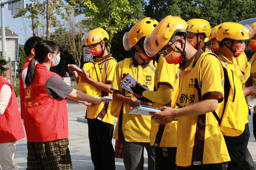 在當天由江北區委組織部和團區委聯合主辦的“寧波愛我、我愛寧波”——“甬愛e家”揭牌儀式上,新就業群體的騎手代表和青年黨員志愿者代表共同為“甬愛e家”揭牌。在“寧波愛我”環節,現場志愿者向騎手代表們贈送了印有“甬愛e家、文明典范”的公益背包,并附贈了雨傘雨衣和防暑藥品等。在“我愛寧波”盡己所能送服務中,騎手代表們領取了公益宣傳折頁,將在日常取送件中遞送到千家萬戶。