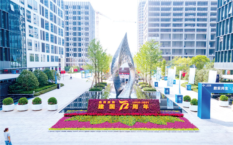 9月30日,金華開發區主干道、廣場、公園處處國旗招展、花團錦簇,營造出歡歡喜喜迎國慶的喜慶氛圍。節日來臨之際,市民也紛紛送上自己的祝福!白N覀兊膰以絹碓胶,蒸蒸日上,繁榮昌盛”“祝愿祖國更加強大,人民生活更加幸!薄白T竾腋訌娛,人民更加富!。(李建林)