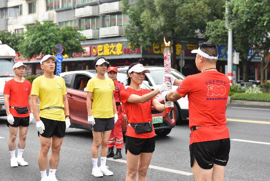 7時3分,徐飛婕舉起火炬和三名助跑員一起邁開矯健的步伐,開始跑向第二個站點——時代鉑悅站。迎著晨曦,一個個火炬接力志愿者從上一棒接力志愿者的手中鄭重地接過火炬,他們沿著萬松路——忠義街——郵電北路——解放路——國旗館接力跑。