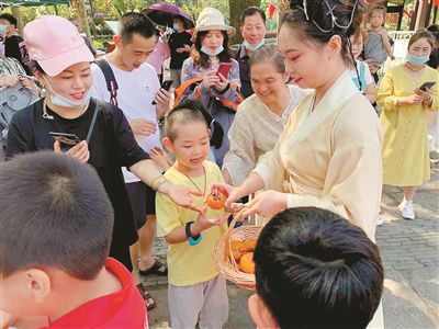 “黃橙紅柿紫菱角,不羨人間萬戶侯”。國慶長假正值2021第十七屆西溪火柿節舉辦。到“火柿映波秋西溪”的醉人秋色中體驗多姿多彩的活動,成為了很多人的選擇。在周家村、洪園區域的柿子采摘點,大家扛著桿子、挎著籃子,忙得不亦樂乎,在西溪體驗做一回快樂“柿”民。宋韻快閃、國風游園會、生態和清廉文化快樂研學、“三深大會堂”清廉書畫展、實景演出《今夕共西溪》等,都讓游客們沉浸式體驗到了西溪風情與本塘民俗文化。