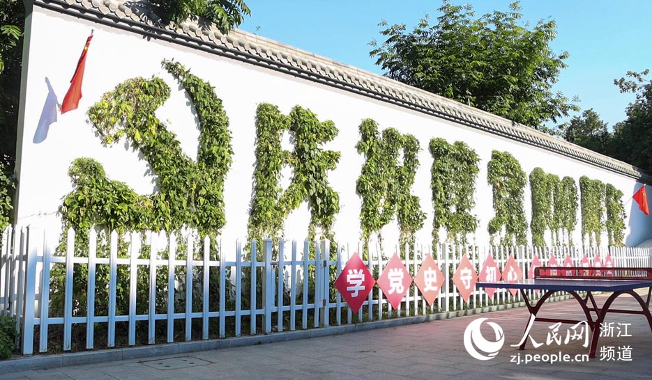 “種一片,成一片,示范一片!痹谕茝V垂直綠化的過程中,金德意和團隊不斷研究藤苗的培育和儲存方法,將扦插苗儲存的時間從3天延長到15天,“嘉興綠墻節已經辦到第11屆,他們每年都過來拿苗,當初也是在我們這里取的經!15年來,金德意團隊送出凌霄藤苗十萬多株,打造了社區、學校等12個具有代表性的垂直綠化樣板,累計種植面積達20多萬平方米。近年來,該團隊還創作了“我愛你中國”“聽黨話,感黨恩”“慶祝建黨100周年”等大型主題文字景觀。
