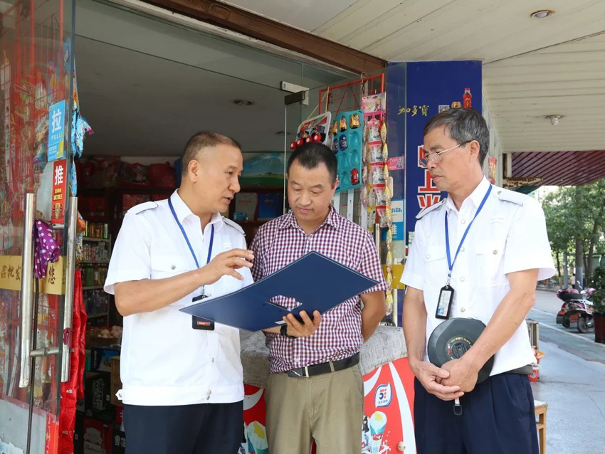 龍游縣煙草專賣局工作人員勸退校園周邊零售客戶。樓小露攝