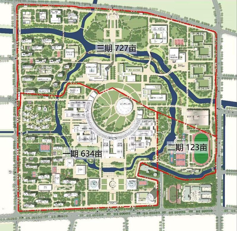 據學校相關負責人介紹,由于學校的教學、科研活動和許多實驗研究需要用到的高精尖儀器都布置在“學術環”里,因此在防振方面要求非常高。振動在不同的介質中的傳導效果有所差異,而水能有效降低振動的影響。環繞起“學術島”的這條河全長2483米,其中有1546米位于即將在今年交付使用的一期、二期校區內。河道最窄的地方10米、最寬的地方35米,平均深度約2.5米。河流的設計作為天然屏障,為各大實驗室的研究順利開展提供了保障,一條環形水系和12座橋梁,實現了自然環、學術環、生活環的有機融合。