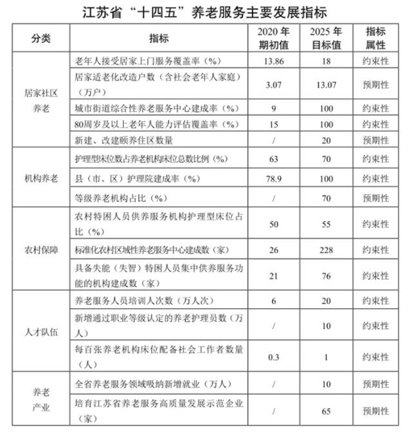 江蘇“十四五”養老服務發展規劃列出16項指標