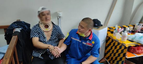 鄭曉成擔心男子睡著出事,自己又非專業醫護人員,不敢輕易觸碰,怕對其造成二次傷害。就和加油員彭圓輪流與男子交談,讓其保持清醒。