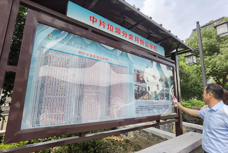 鳳凰村垃圾分類月度公示欄。蕭山區垃圾分類辦供圖