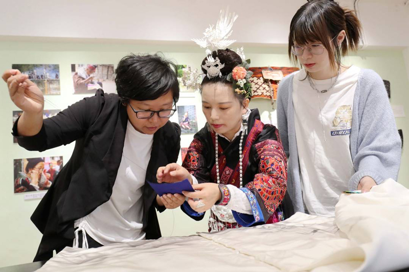 苗族刺繡手工藝家正在向當地村民傳授刺繡技藝。謝尚國攝