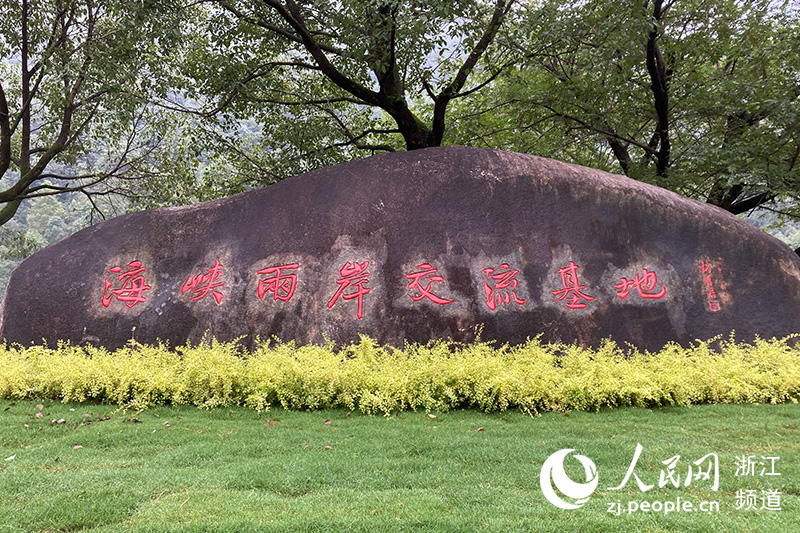 縉云仙都景區“海峽兩岸交流基地”石碑。人民網 秦文攝