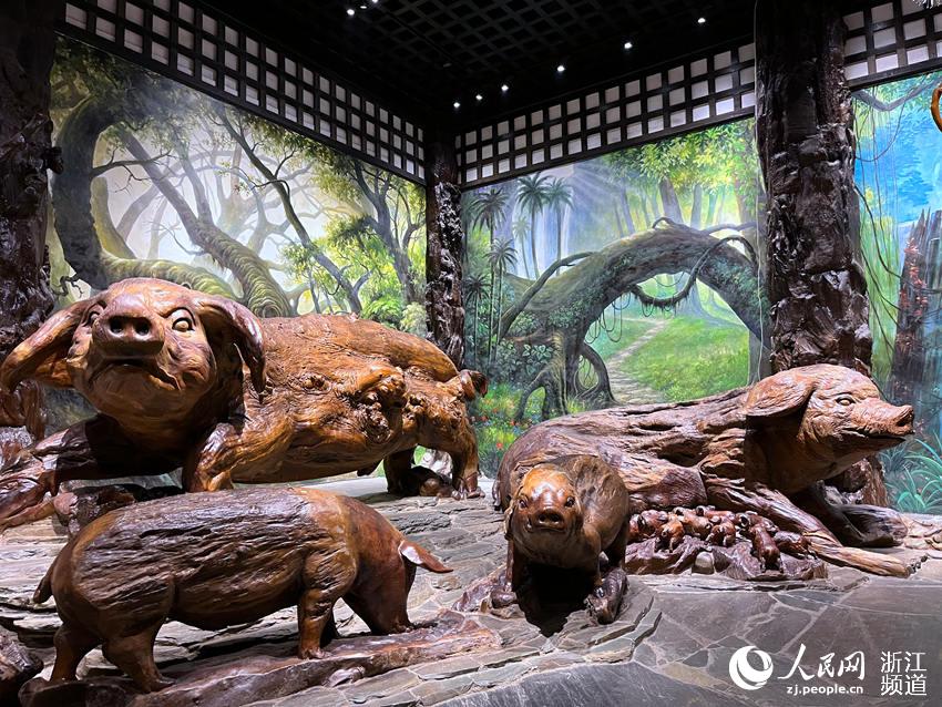童趣園館“十二生肖”根雕像——豬。人民網 陳萬泉攝