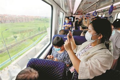 乘客搭乘今年開通的杭海城際鐵路列車出行。李忠攝