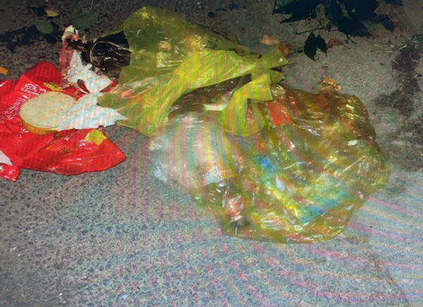 從高空掉落的兩袋生活垃圾。蕭山公安供圖