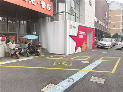 記者在民生綜合體前看到,這里有一個專門的殘疾人車位,黃色的線標明。大門口設有無障礙坡道,特別安裝了高低雙層扶手,扶手上還有盲文。
