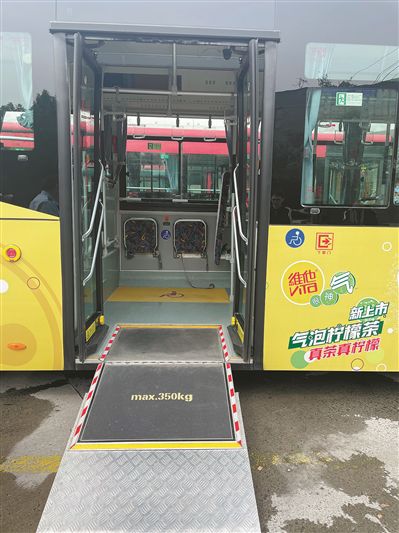 在社區的馬路對面,正好是蔣村公交總站,記者發現,道路上的盲道一直延伸至公交車的?奎c。更令人驚喜的是,站內的公交車上下門,都安裝了移動的坡道,可以讓輪椅直接上去,同時,車內專門設置了輪椅停放區域。